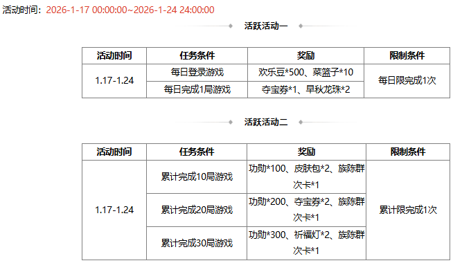 活动时间:2026-1-17 00:00:00~2026-1-24 24:00:00