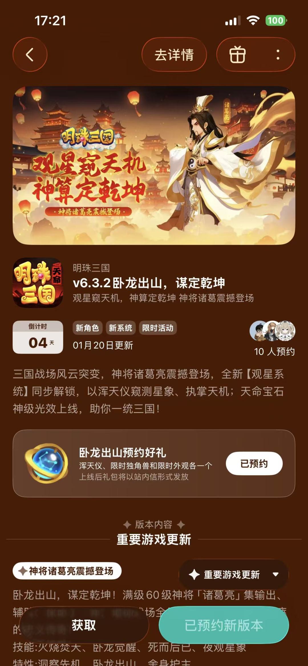 留言内容:“已预约,期待《明珠三国》新版本!卧龙出山,谋定乾坤” + 晒出你的预约截图~