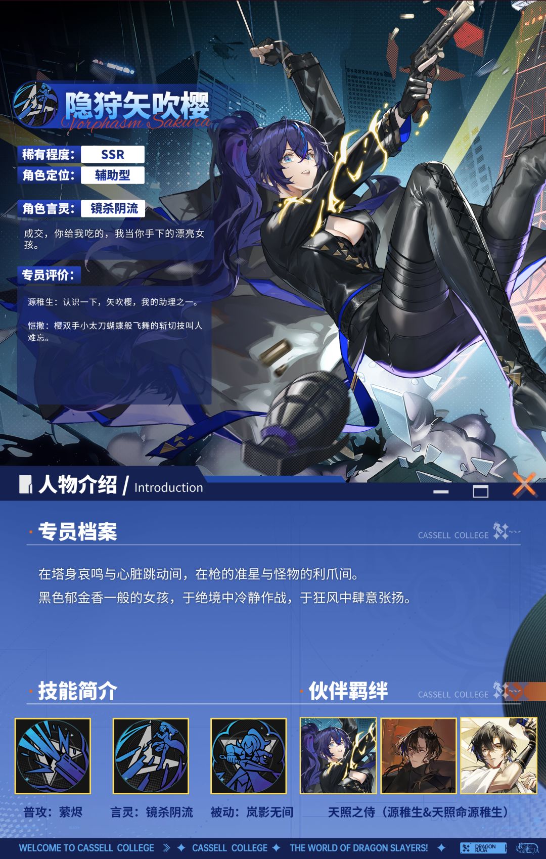 技能前瞻 | 全新限定SSR伙伴隐狩矢吹樱