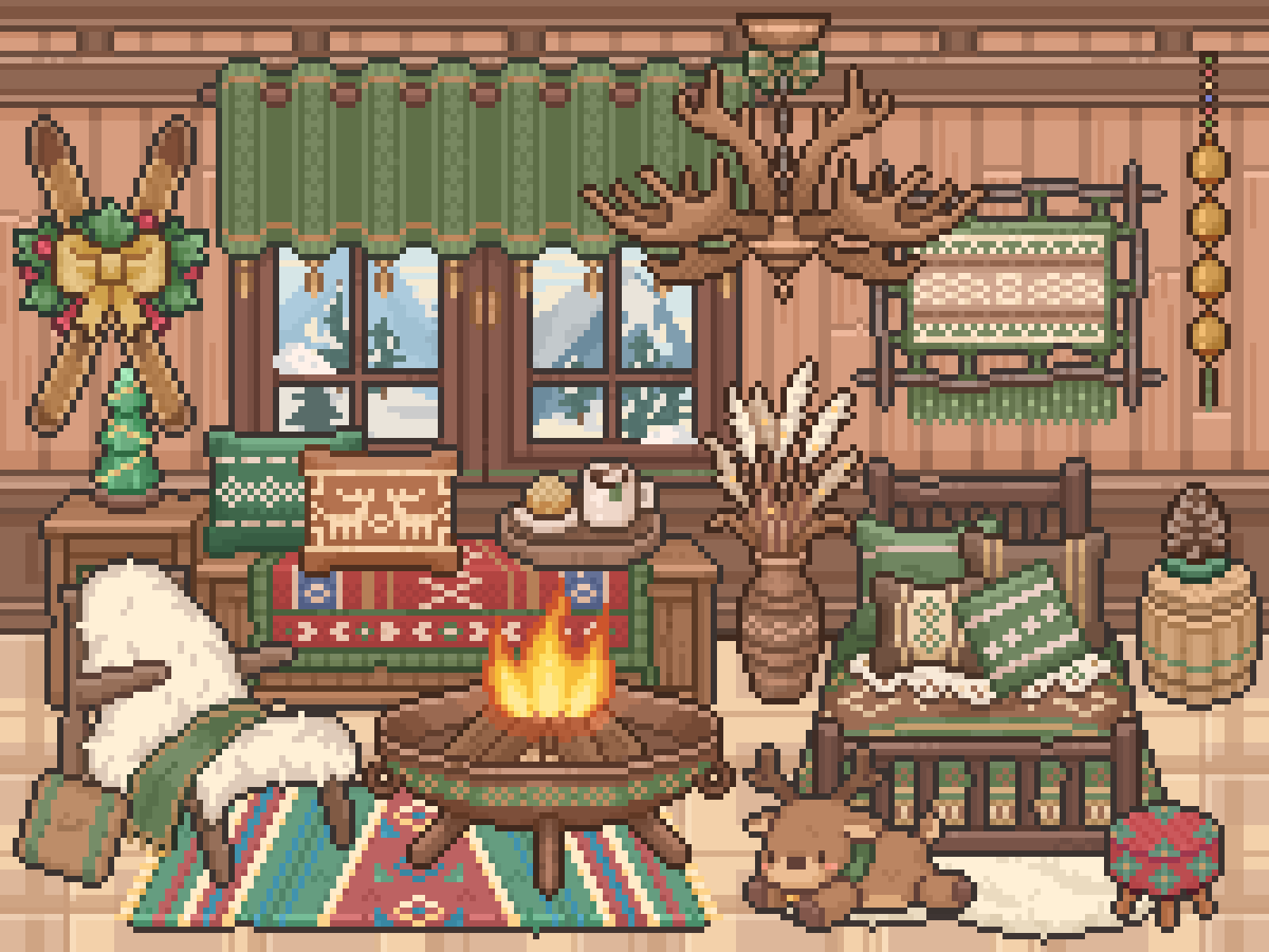 这是一套充满自然风情的冬日套间,温暖摇曳的火盆与毛茸茸的毯子带给你冬日独有的温馨体验!