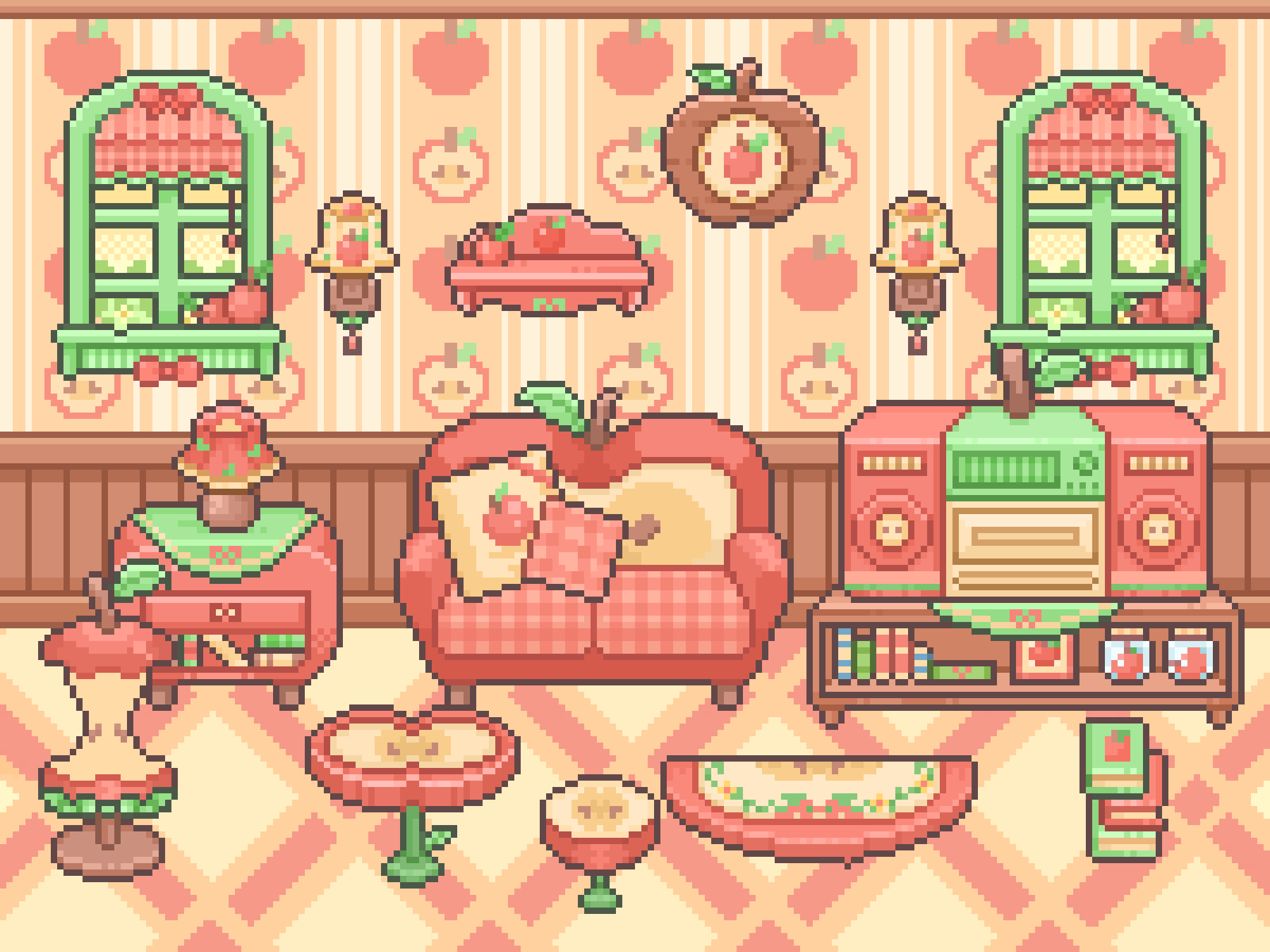 一套可爱的红苹果套间,可以和已有的“红苹果厨房”许愿套间相搭配。