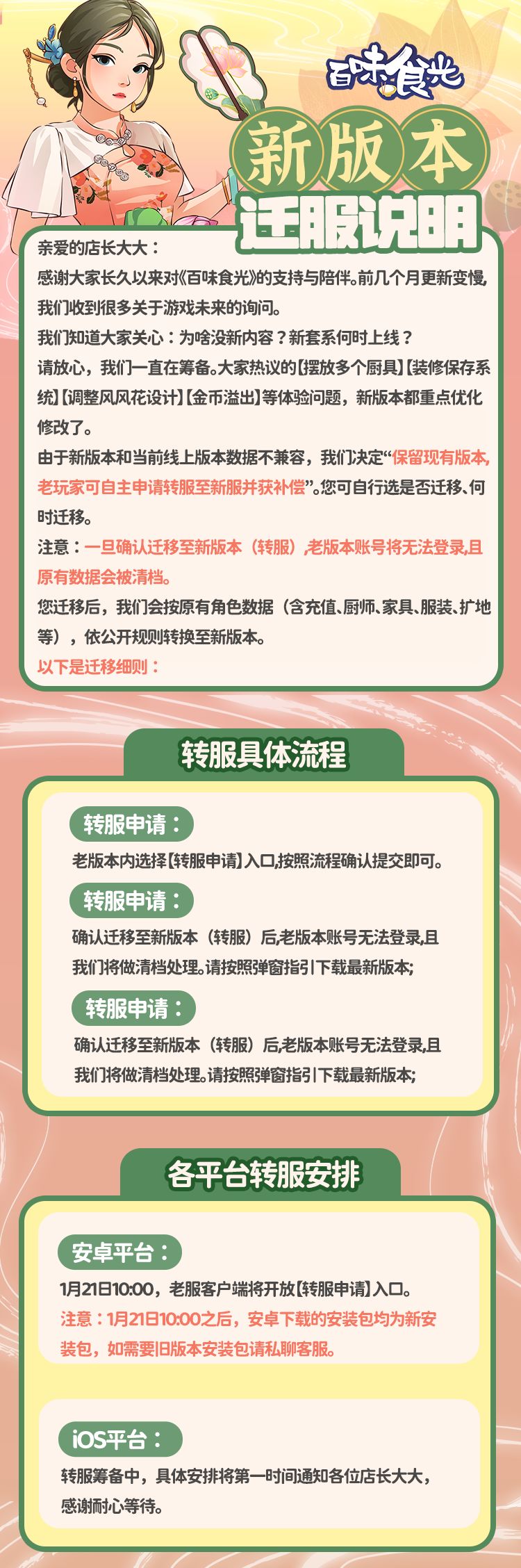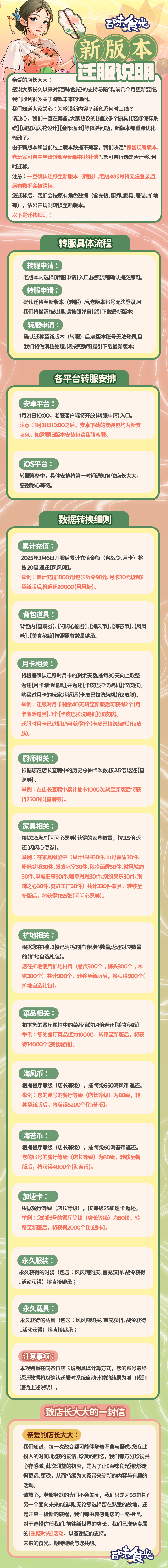 《百味食光》新版本转服说明