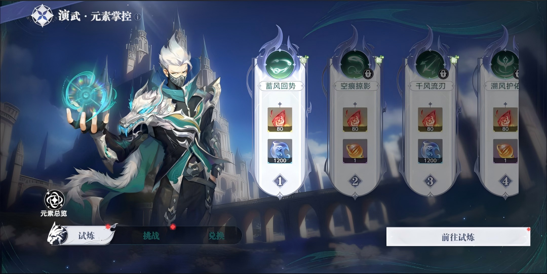 【元素掌控】分为元素试炼和元素挑战两个部分。