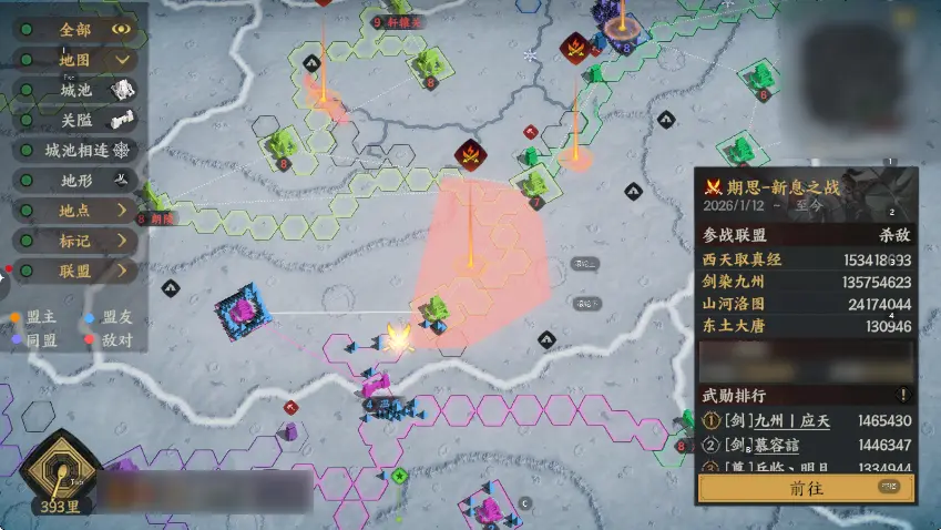 S3-14区的司隶南战场风云突变,上演了一场精彩的战术逆转。此前一度陷入被动的【风起龙渊】阵营,凭借一次极为精妙的调度转危为安。1月13日深夜,【风起龙渊】果断发起大规模退盟重组,并令退盟成员主城原地驻守司隶南,此举极大缩短了后续兵力的支援路径,为反击埋下了决定性伏笔。