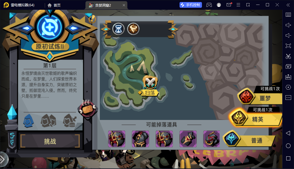 在打了很多次普通大手以后通关并且开了原初地图
