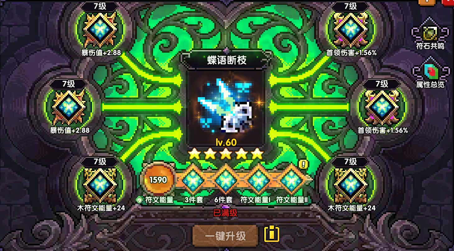 - 蝶语断枝:木功+首领伤害+穿透