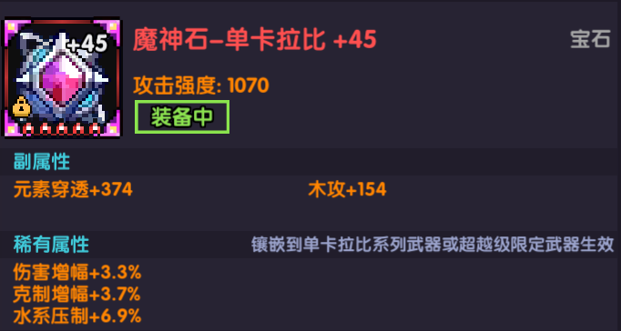 - 防具卡:主属性攻强百分比+副属性木功/攻强