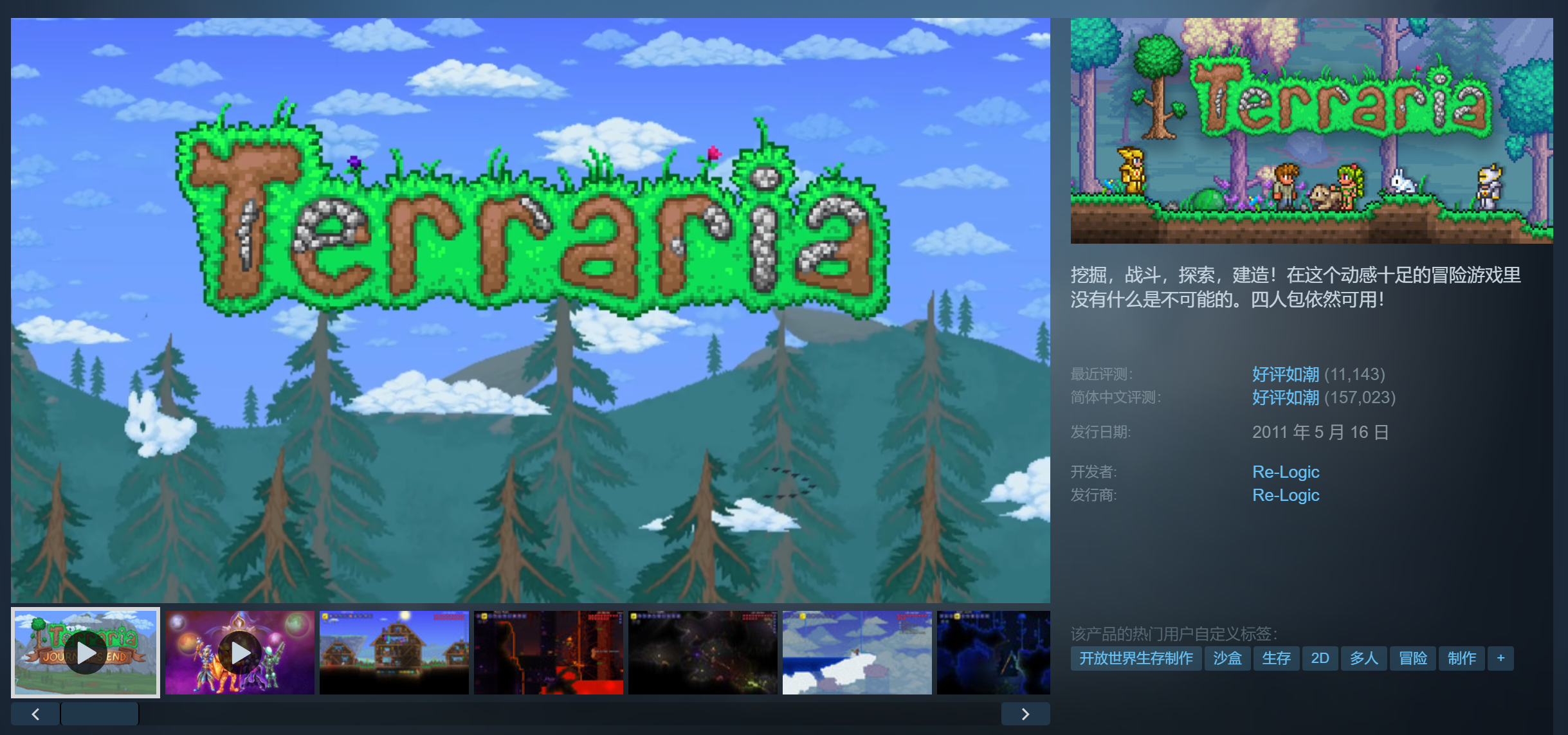 游戏自2011年推出以来,就凭借其沙盒探索、基地建造和Boss战斗深受玩家喜爱,成为Steam平台上拥有最高好评数的游戏之一,长达15年仍持续更新,是名副其实的“资料片长青树”。