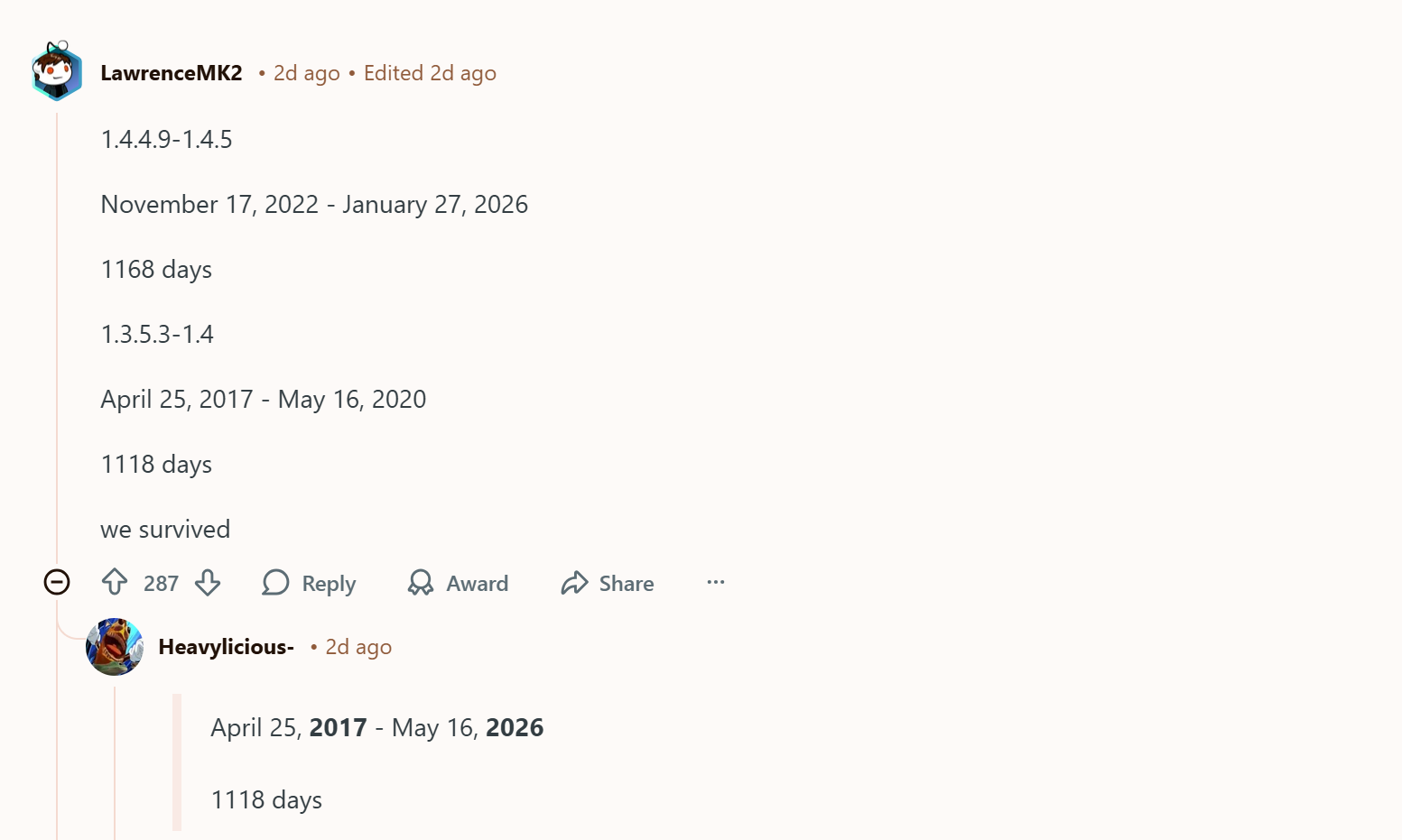甚至有玩家细数了“跨时代里程碑”的更新时间——