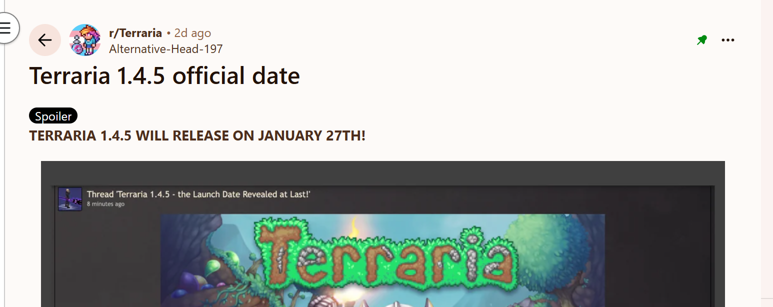 《泰拉瑞亚》1.4.5定档1月27上线|这次真的来了!