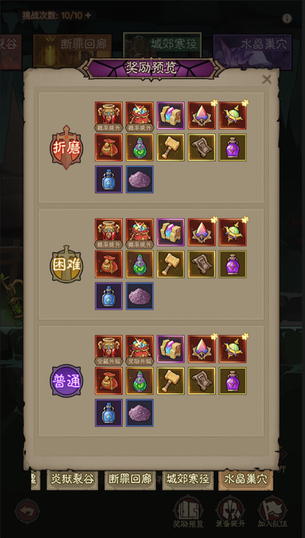 拓展5个新章节——苍穹废墟、炎狱裂谷、断罪回廊、城郊寒径、水晶巢穴