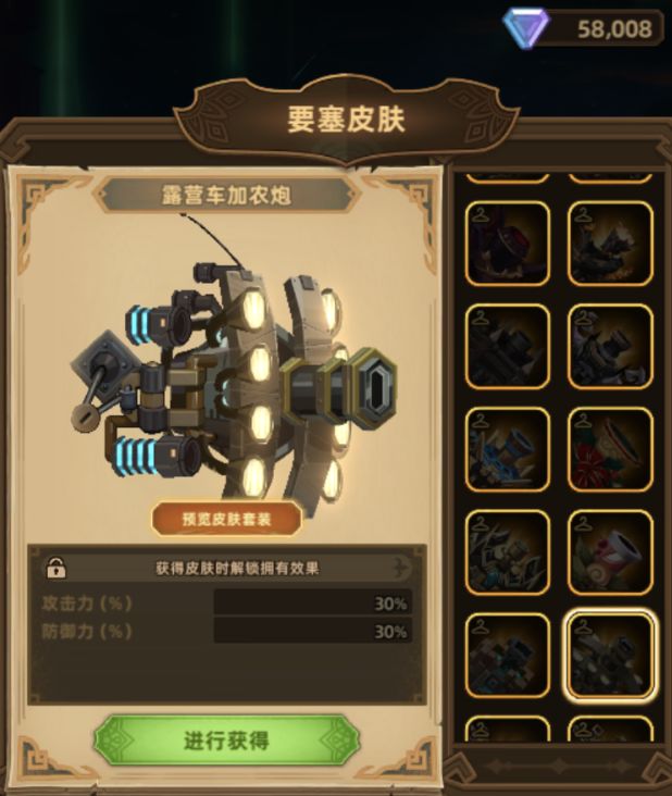 如果说前几个获取有点难,或者错过了。那花90个皮肤币换“露营车加农炮”也不错: