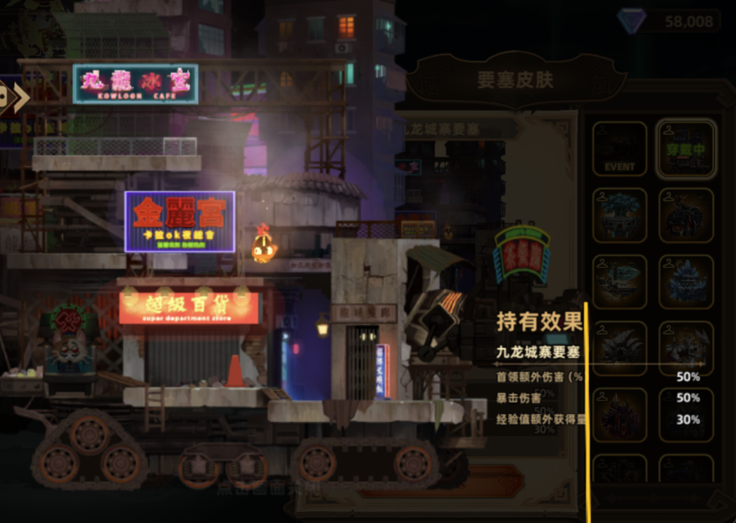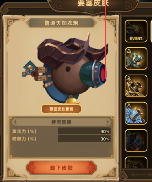 上面就是我看了所有的皮肤预览里唯二的炮口长过了“果”字的皮肤。所以想要挂机效率,首选上面两个要塞皮肤,而且都是白嫖就能到手的。