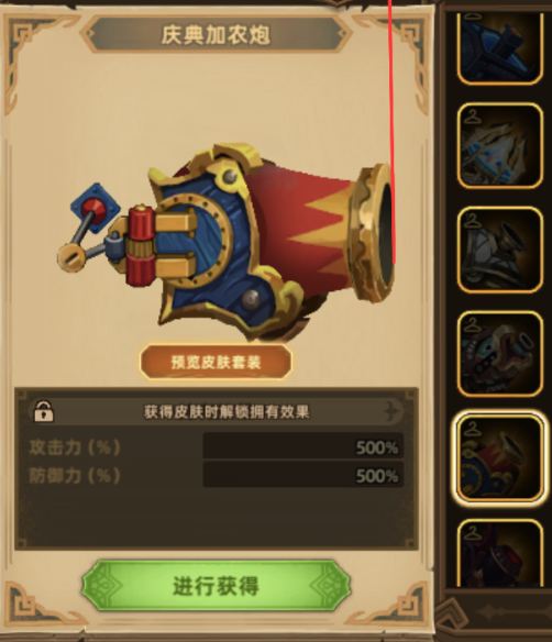 最长的大炮皮肤是“庆典大炮”皮肤,可惜要氪金才能换: