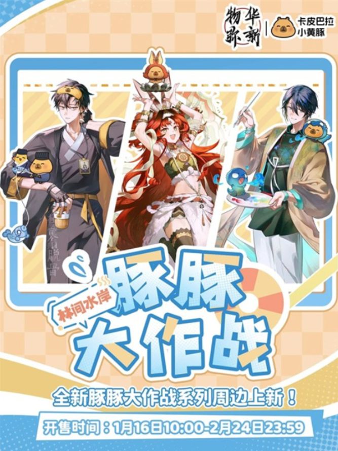 《物华弥新》全新联名周边「豚豚大作战」系列已于1月16日10:00正式开启预售,以超人气卡皮巴拉小黄豚为核心主题,将游戏内角色转化为实体收藏品,吸引玩家与收藏爱好者争相锁定。