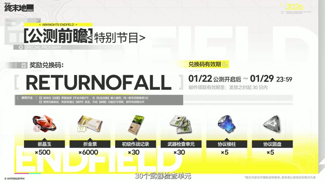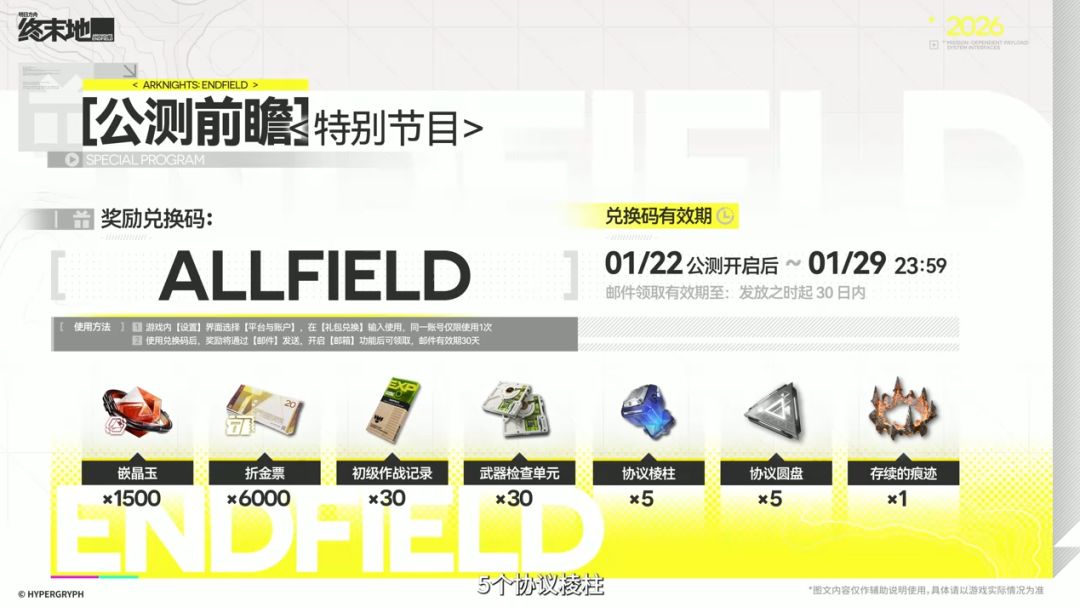 明日方舟终末地公测135抽资源奖励和兑换码
