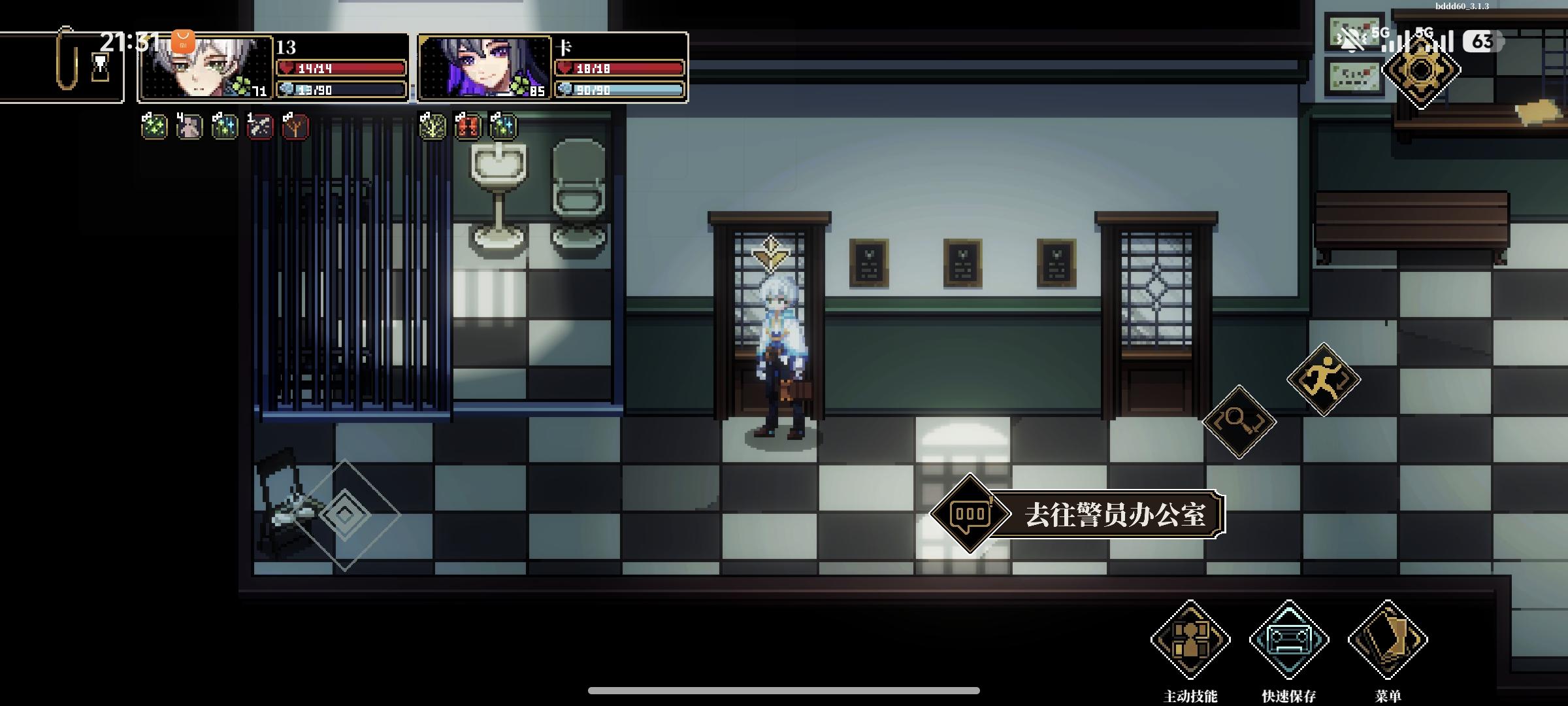 来到最左边,放出可怜的孩子,没有撬棍的话,可以先进警员办公室,搜刮完之后再放它出来