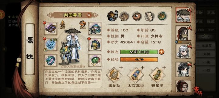 在投入资金有很多贡献卷的情况下就出师到二阶换一下先天功和罗浮剑意,离开太乙教之前记得把小星云剑法给学了且务必学满(在燕王通关前用不上)