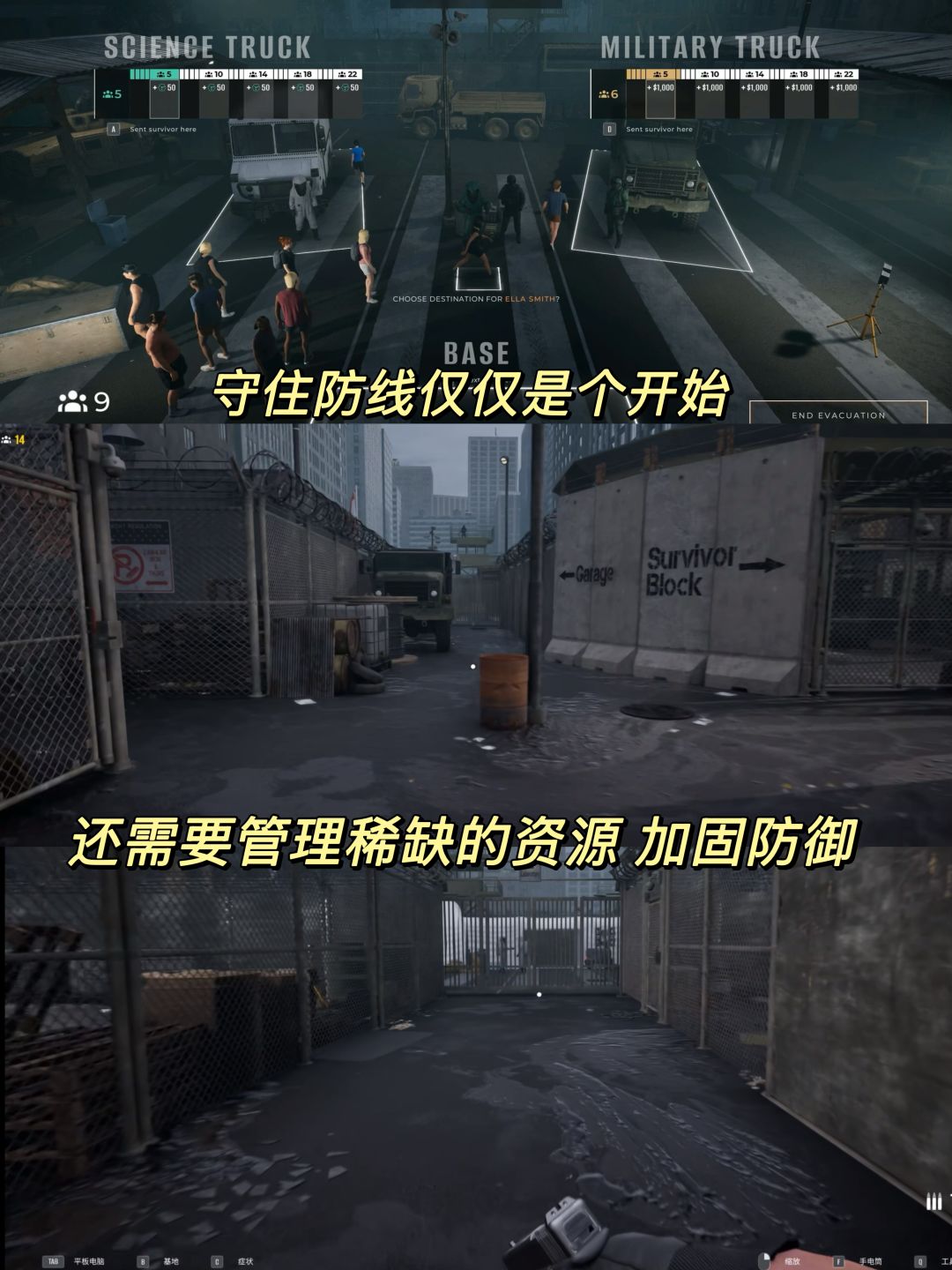 ✅但守住防线仅仅是个开始,在日益加剧的混乱中,你需要管理稀缺的资源,加固防御,并维系整个营地的生存。