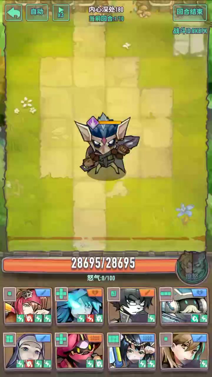 诺依曼大(10怒)→爱因斯坦普攻(70怒)→黑猫普攻(10怒)→诺依曼普攻(10怒)→王莽大(10怒)→奥古斯都普攻(60怒)→诺依曼普攻×3(30怒)→王莽大(50怒)→王莽普攻(30怒)→诺依曼普攻×2(20怒)→德雷克大×5→汉尼拔大(50怒)→诺依曼普攻×5(50怒)→德雷克大×9