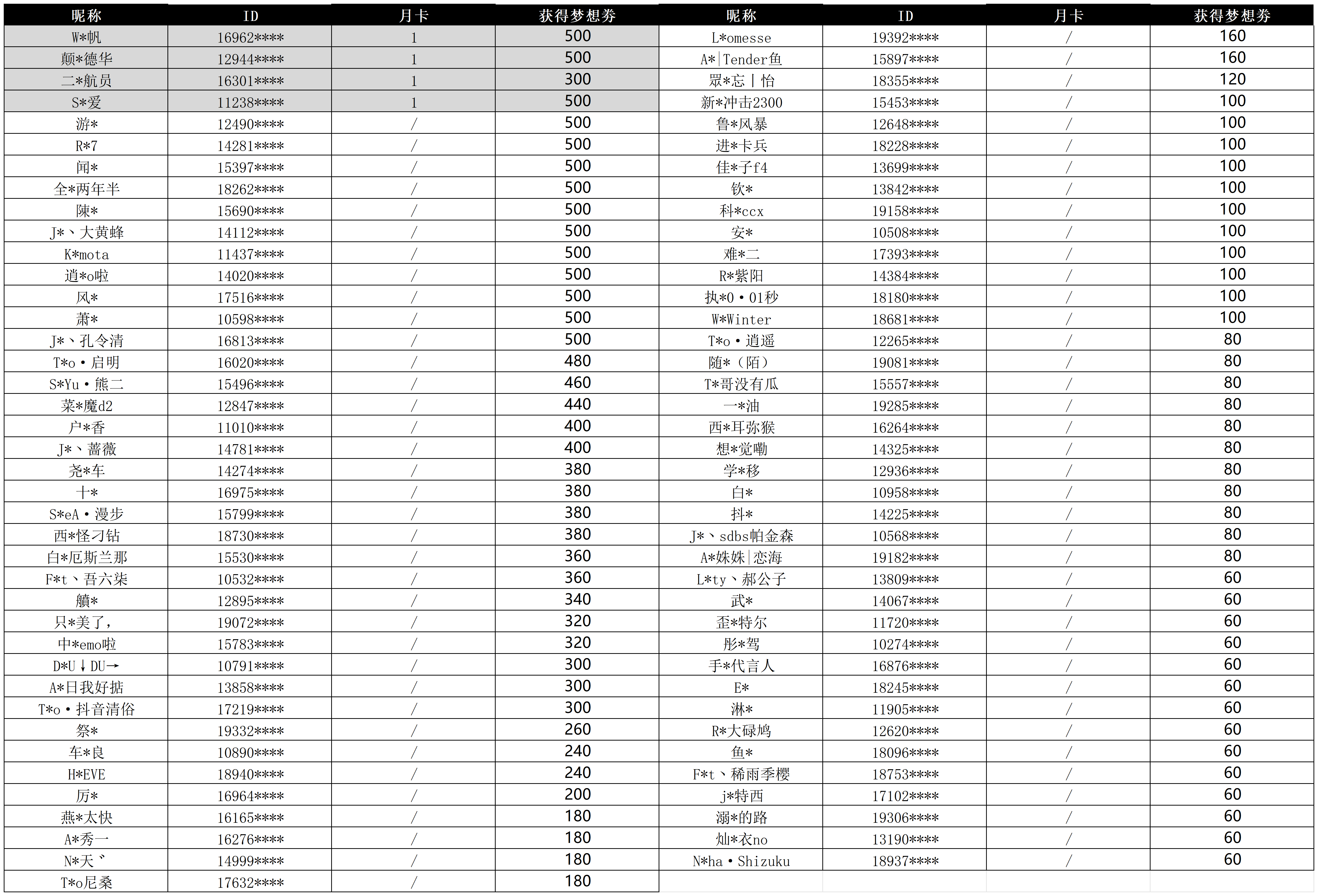 单周排行榜奖励:单轮第1-3名分别获得100/80/60张梦想奖券;每周总榜单前4名额外各获月卡1张;