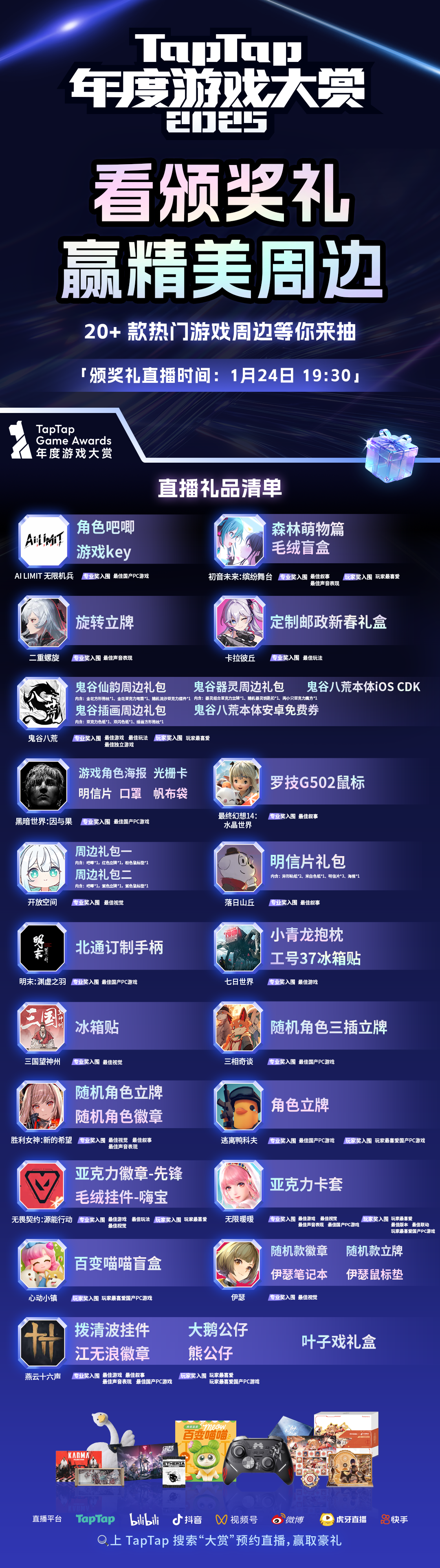 #2025TapTap年度游戏大赏 颁奖礼简直是群星闪耀+豪华直播福利双重暴击,速来集合!