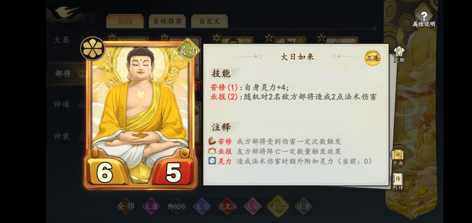 2:传统灵山如来需要上水月观音和频率部将导致没格子上养身材的部将,新版缺心眼+地藏王+寿星+如来,还有三个格子随便用,不行上个李天王破盾+身材。