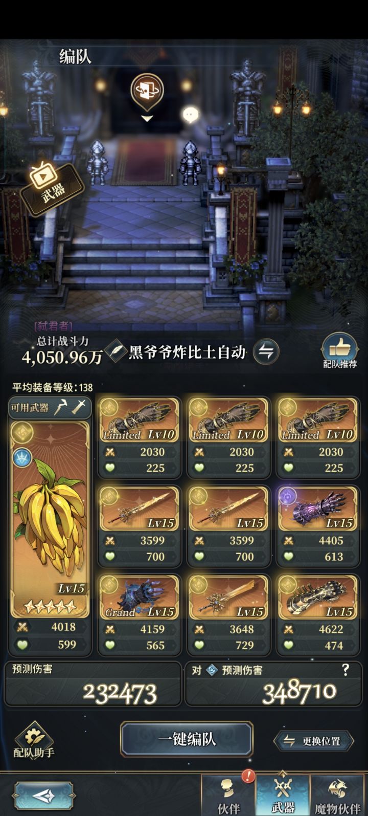 全自动炸连携,反正把输出灌出去就好,前面四轮就可以灌出来700w贡献,炸黑爷爷盾无压力。后边多打一轮赚一轮,首充风没有就换个别的土,第三轮会法主错轴打3c,不过影响不大。