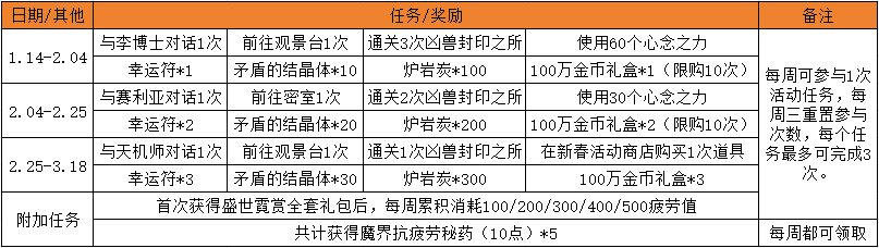 该活动的关键在于“同样的任务每周都可参与1次”,也就意味着每个任务的奖励在活动期间都可以领取3次。