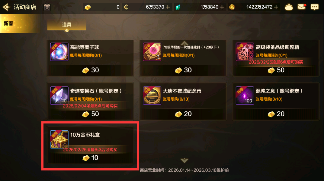 多余活动币全部兑换“10万金币礼盒(不限购)”,在金币急缺的当下,该金币礼盒为玩家提供了大量的金币物资,这就让“每天最多可获得30个心念之力”变得尤为重要,一定要记得每天都要参与活动地下城哦!~