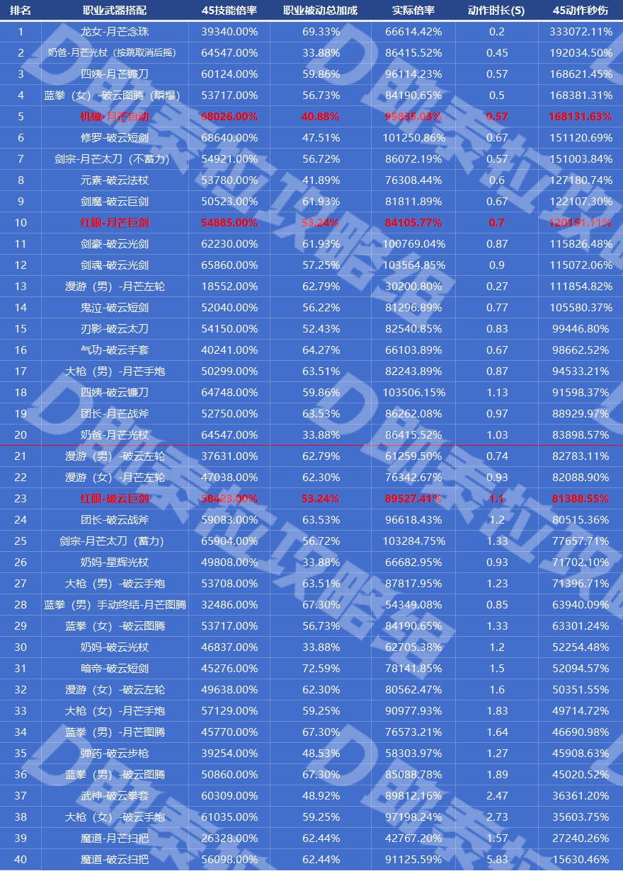 根据各职业动作秒伤表格不难发现,红眼镇魂体系下的提升是巨大的,机械排名没啥太大变化,可能有人要说了红眼不过才排第10,不算太高
