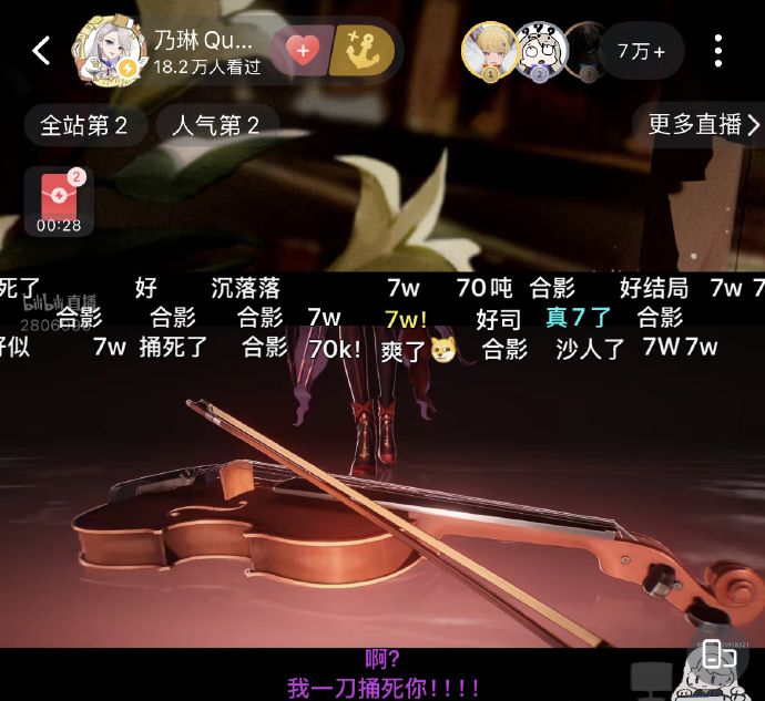 要注意这并不是B站直播页的“7万人看过”,而是实实在在的“7万人同时观看”。这是什么概念呢?一个绝大多数虚拟主播都望尘莫及的数字,即使扩大到B站直播区也算得上“凤毛麟角”。如果说在B站保持2万同接是一线主播,那么能创下7万同接记录乃琳,现在已经是毫无疑问的顶流。