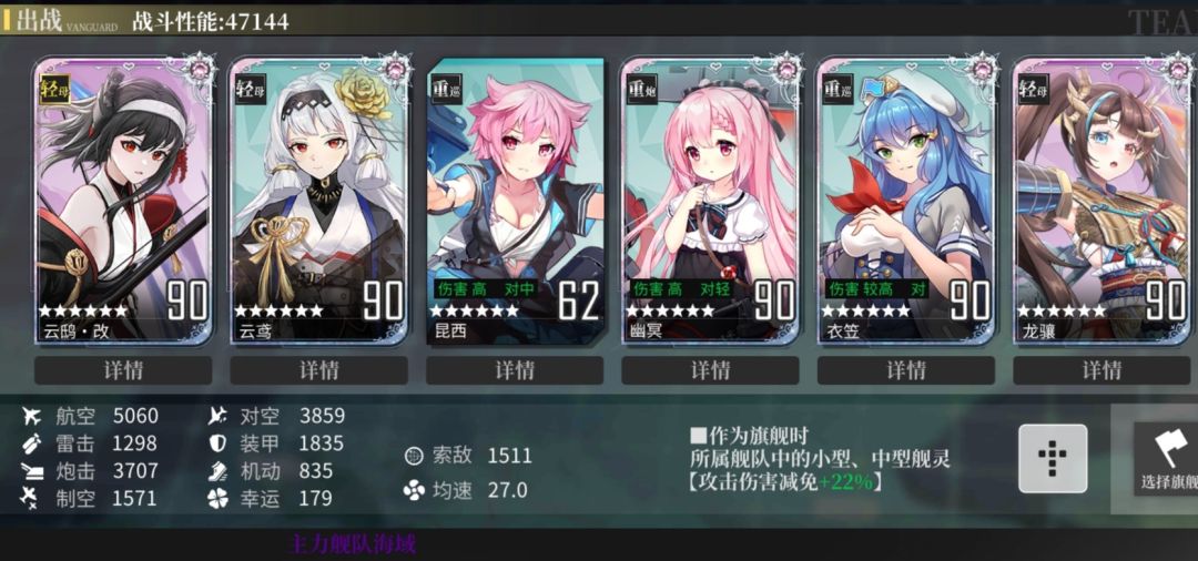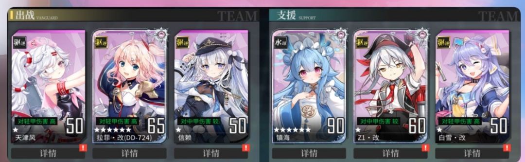 好了,下面就来聊一聊配队吧,配队我的思路是尽可能的去用必练的舰灵,还有就是一舰多场通用来节省养成资源。
