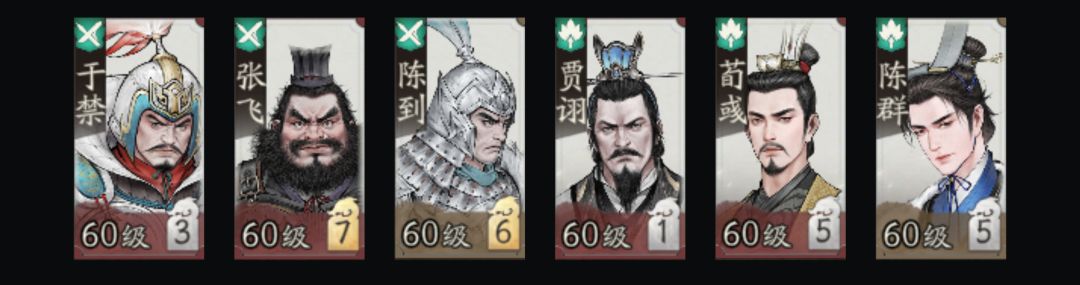 于禁、张飞、陈到、贾诩、荀彧、陈群