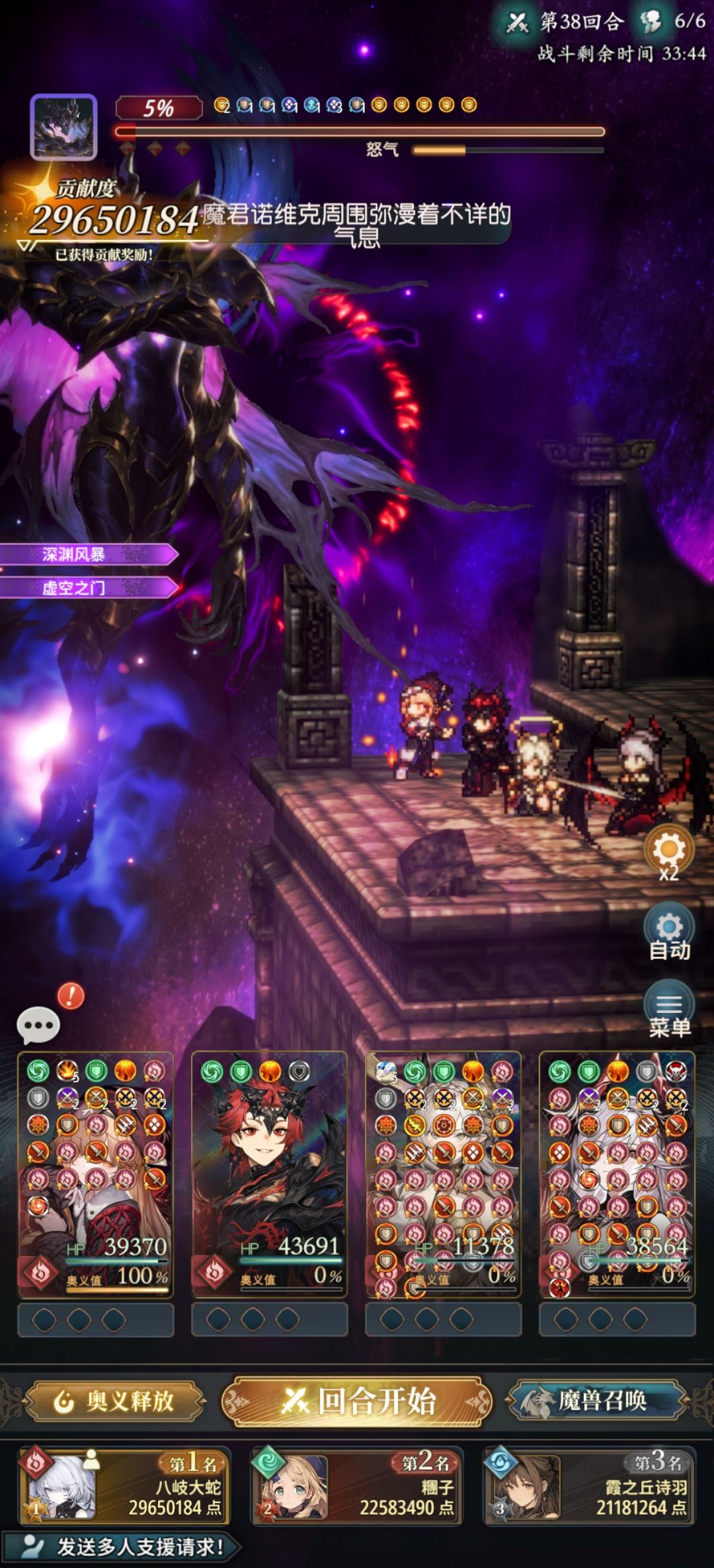 召唤好了就按加加伤害和buff,安德烈3需要水解除试炼后才能高概率命中,之后观察魔君豆子,轮流覆盖加防减伤即可。