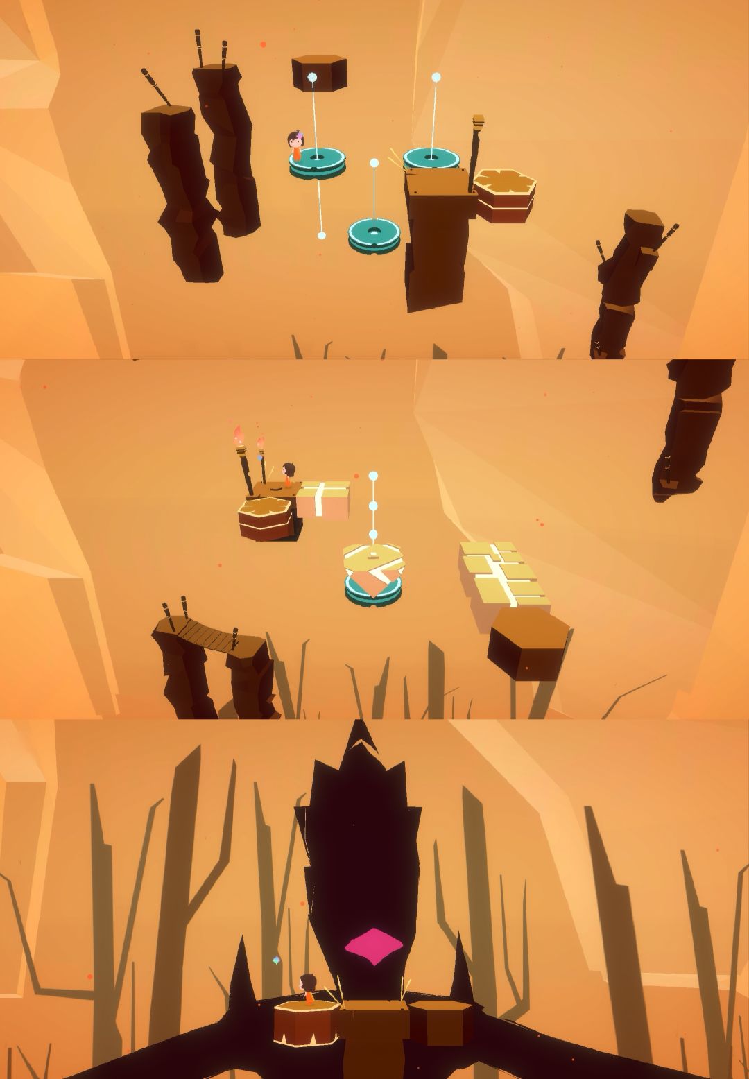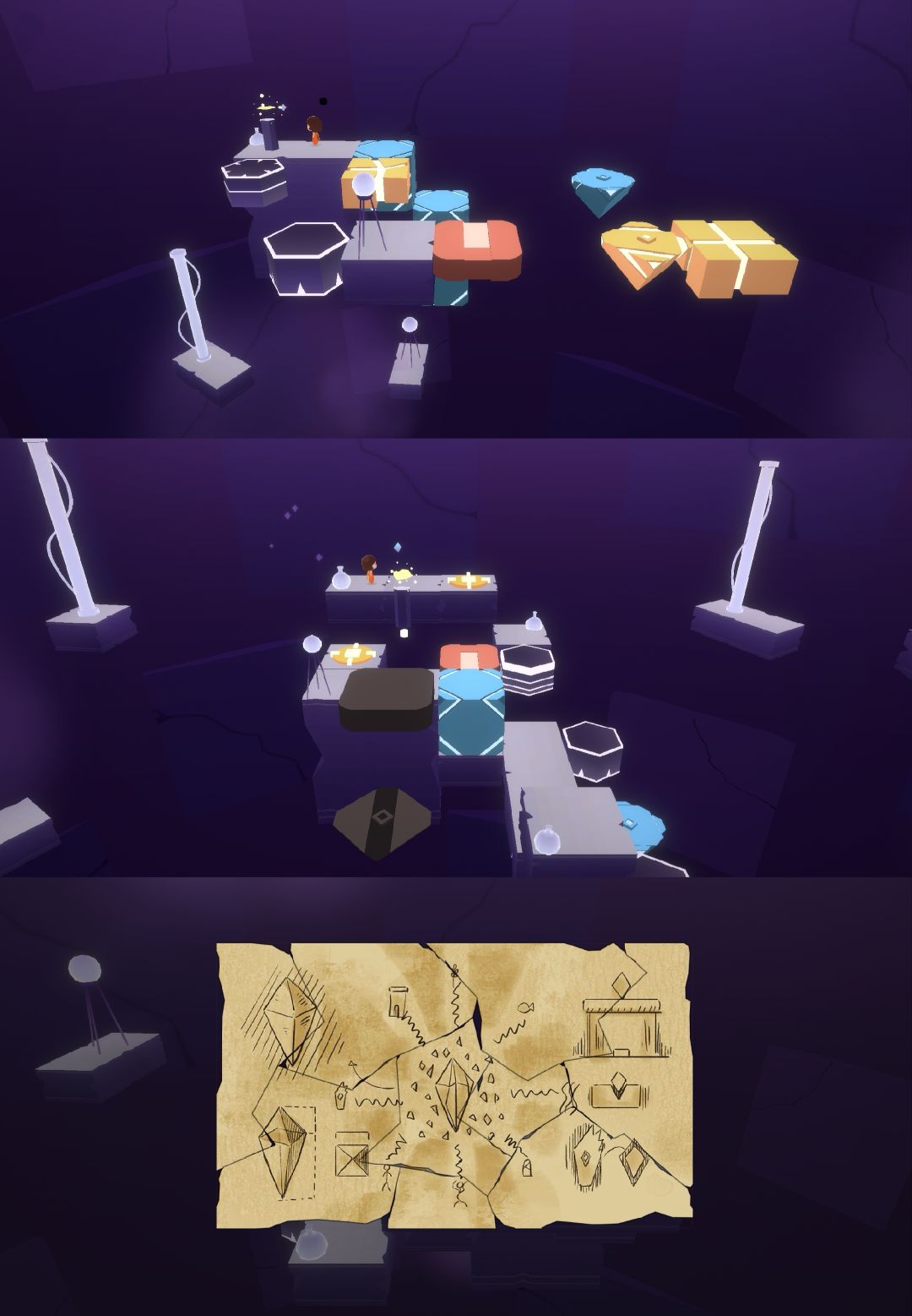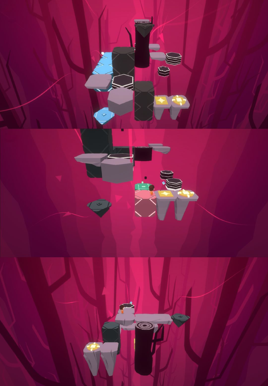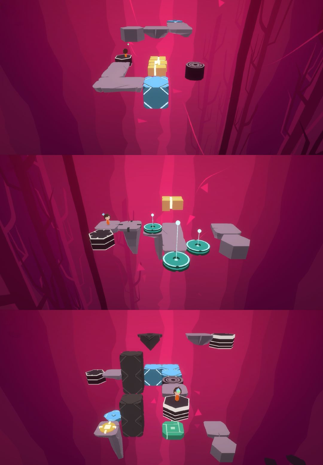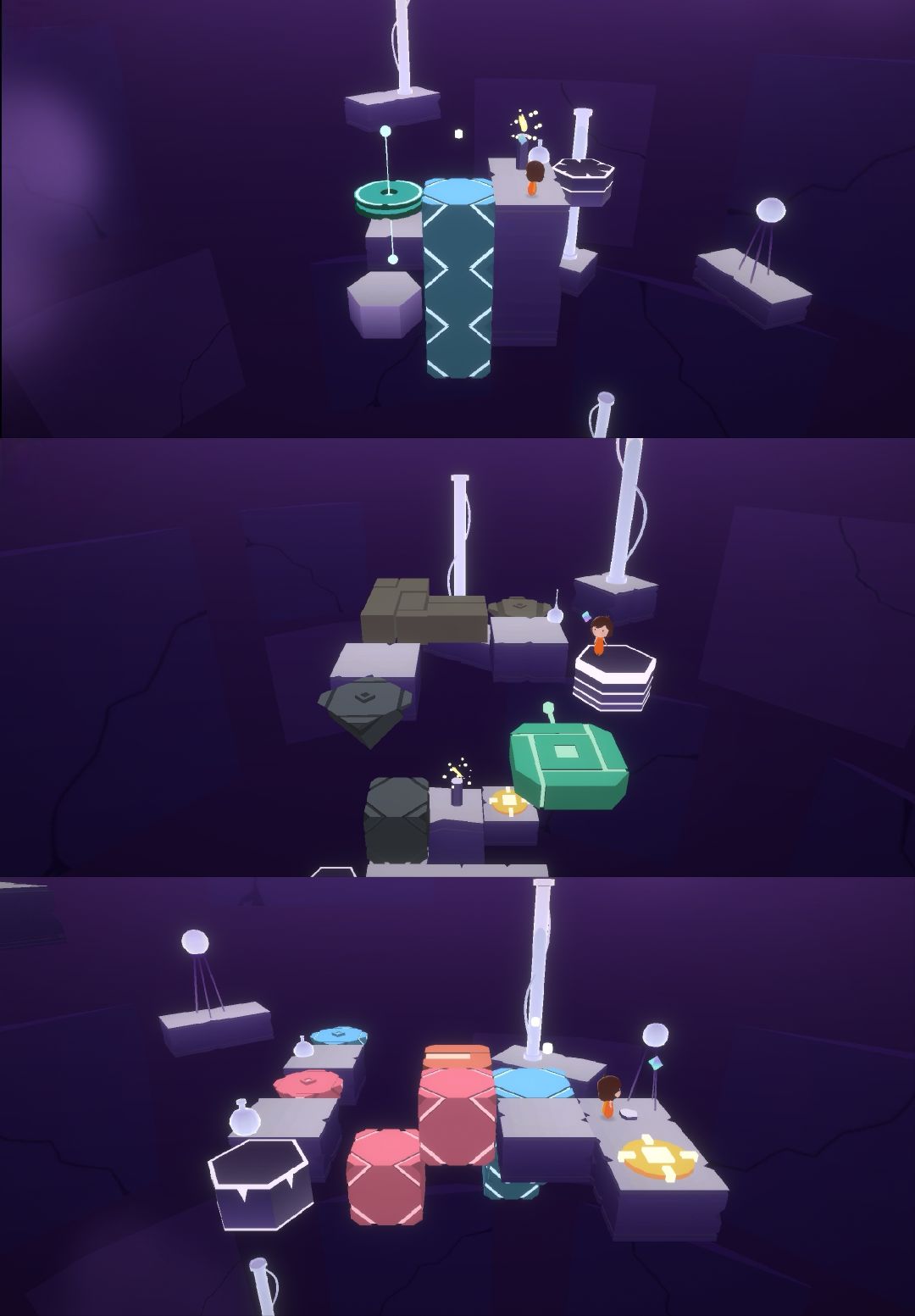 这是一个操作类解谜游戏,剧情是名叫Relu的小女孩跟随魔法水晶的指引,探索神秘世界,寻找失散多年的爸爸。游戏共6章,总共要收集31个拼图碎片。每一章有着不同的场景,每个场景都有相应的主题颜色,代表着小女孩所要面临的困难。游戏有一定难度,比较考验玩家的思维能力和操作能力。