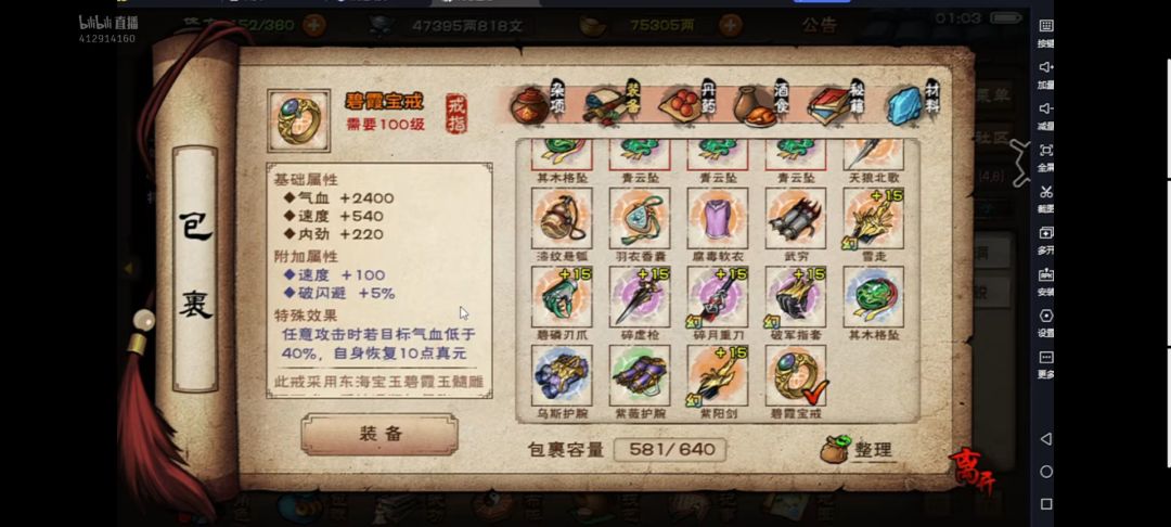 戒指100速度5破闪+任意攻击的目标血量低于40%时回10真元,看起来是多动破前用,太阴的专武?没咋玩过太阴感觉还是得聚气和伤害高吧……