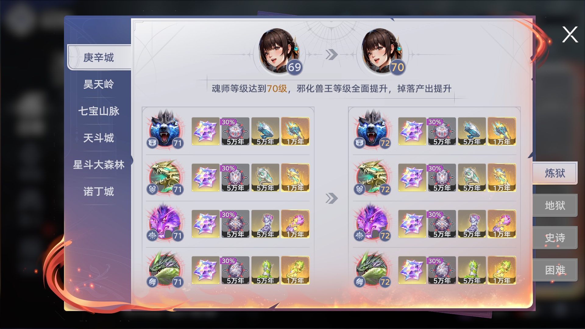 7 .魂师等级达到70级