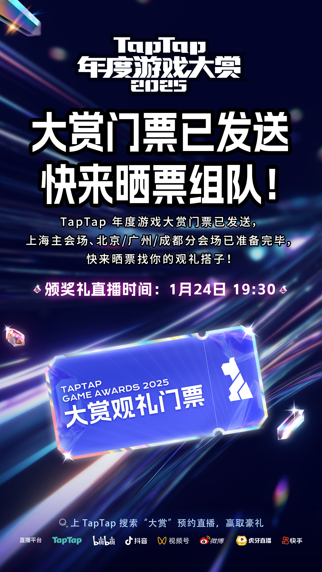⏰ 1 月 24 日 19:30,大赏颁奖礼将正式开启,分会场同步直播,全国玩家一起见证游戏圈年度盛宴!