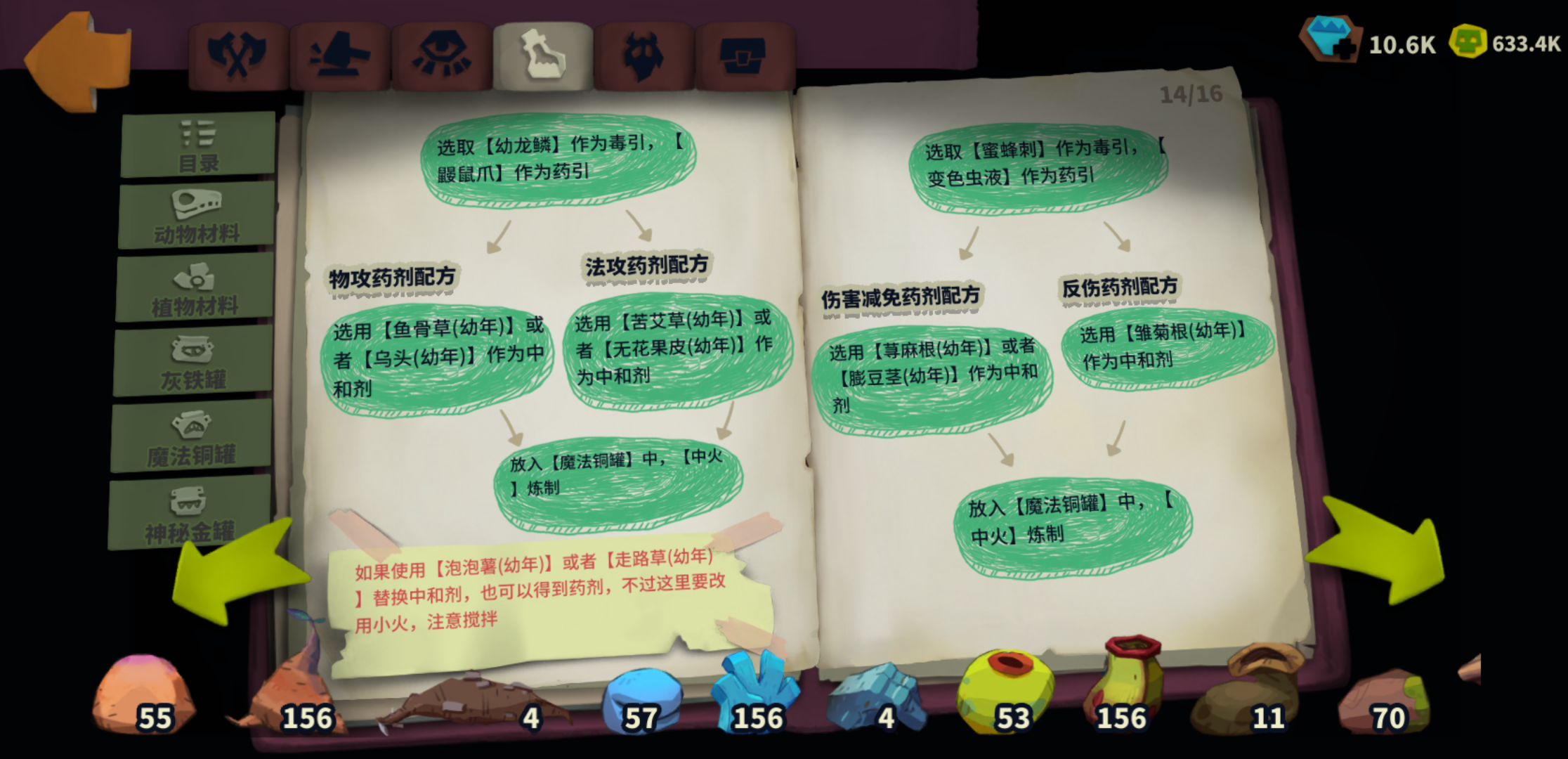 做魔药不知道哪漏做了,剩几瓶不知道是啥,劳驾哪位大佬过目不忘,给我掌掌眼(其中俩瓶我有眉目,但是神秘金罐做不出来,配方见下二图)