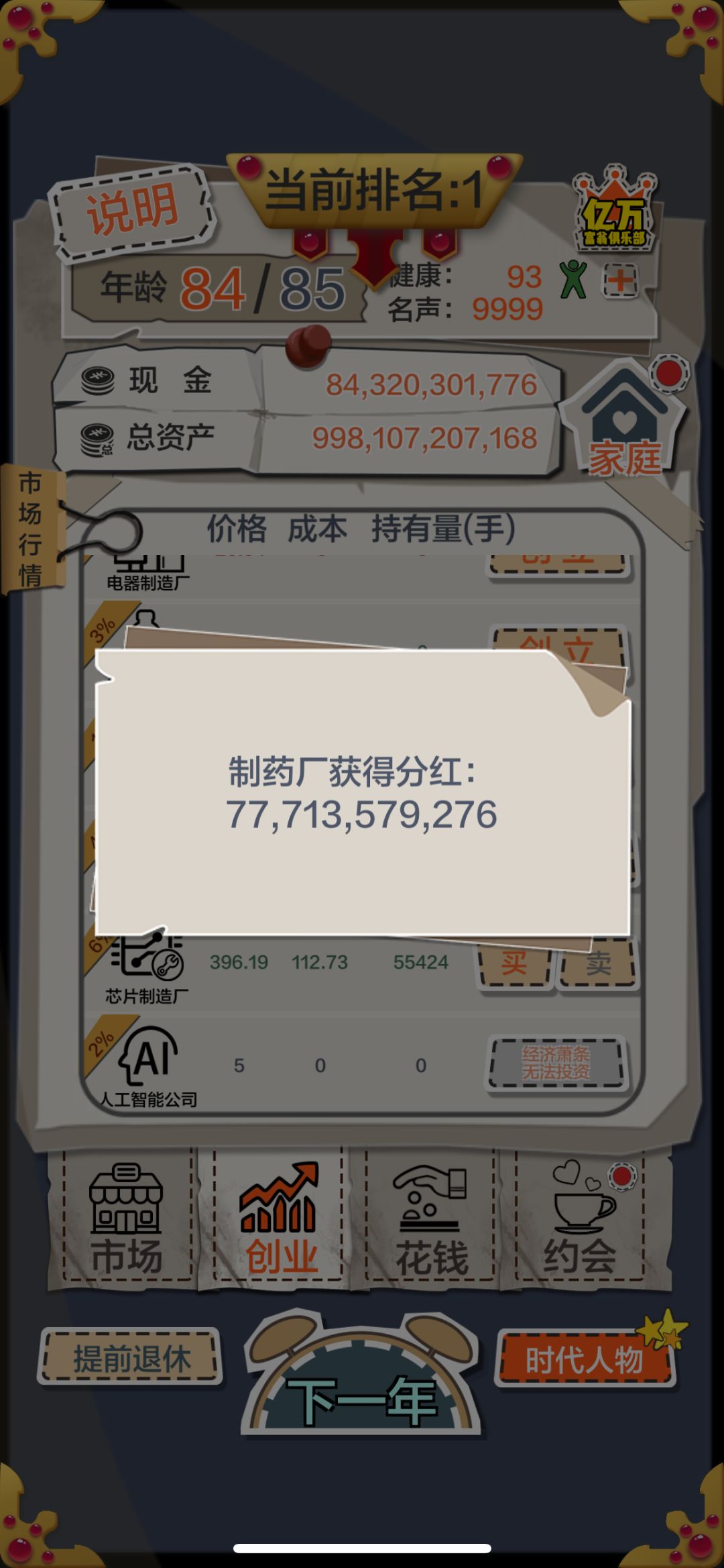 开局没刷到卡亚 心想这把凉了,没想到50几岁的时候公司分红上亿了,不得不说传家宝属性拉满确实日子有盼头