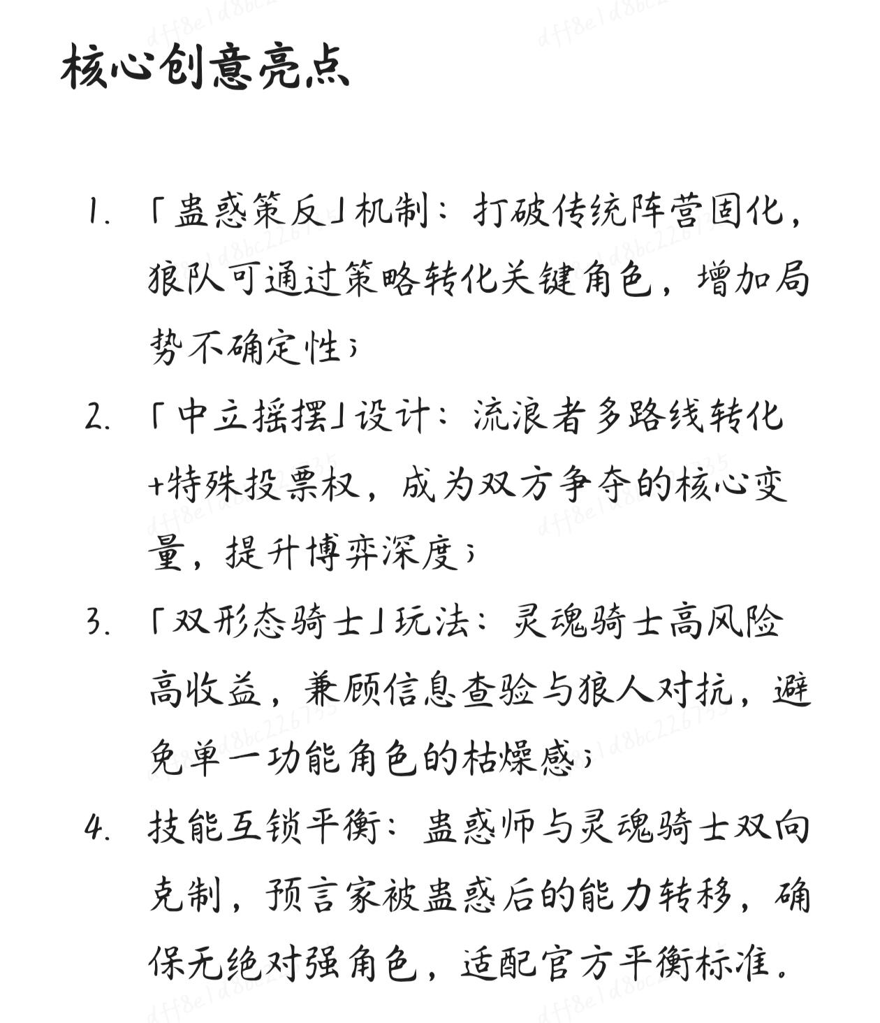 如果狼人能把女巫策反成队友,如果骑士戳错人会被封锁灵魂,如果中立玩家能变狼王… 这局狼人杀你敢玩吗?!12人原创板《蛊惑人心》上线,三大核心机制颠覆传统阵营,现在公开完整规则,求各位狼人杀大佬品鉴:你觉得狼队和好人谁更占优?你会怎么玩灵魂骑士/蛊惑师/流浪者?