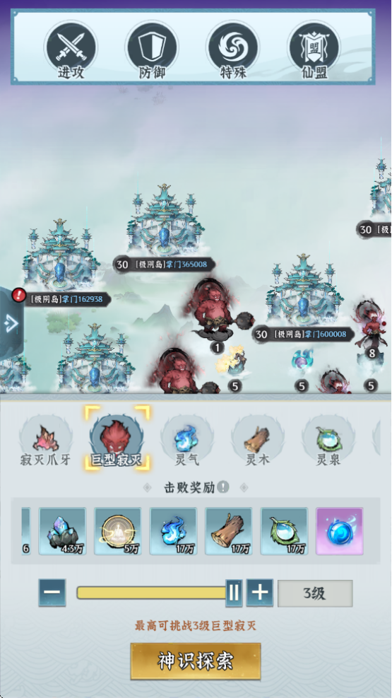 如果大家加了仙盟,有盟友在附近的时候,也可以抱大腿,和别的大佬组队,就能够打赢更强的巨型寂灭,获取更丰厚的奖励!