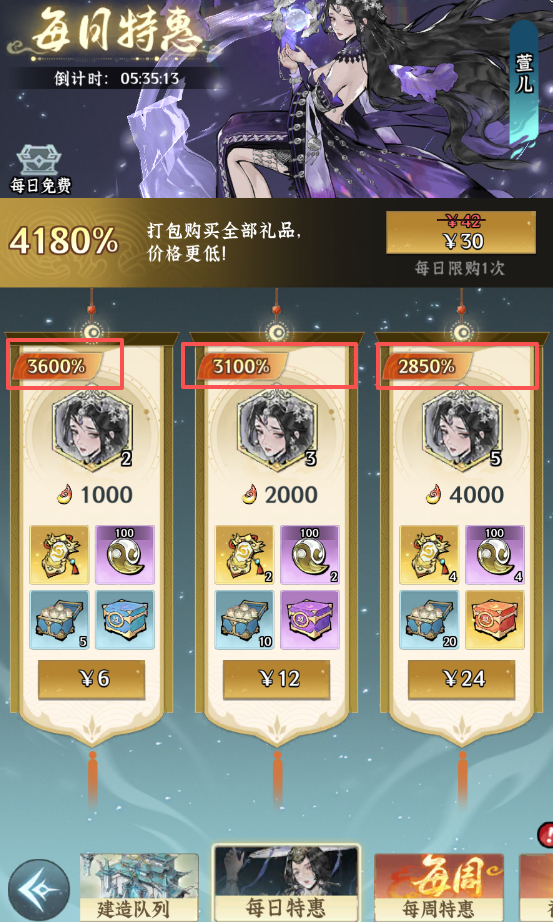 游戏里的资源礼包,基本都标注了相比直充的优惠倍率,大家买的时候可以对比一下,看看买哪个最合算!