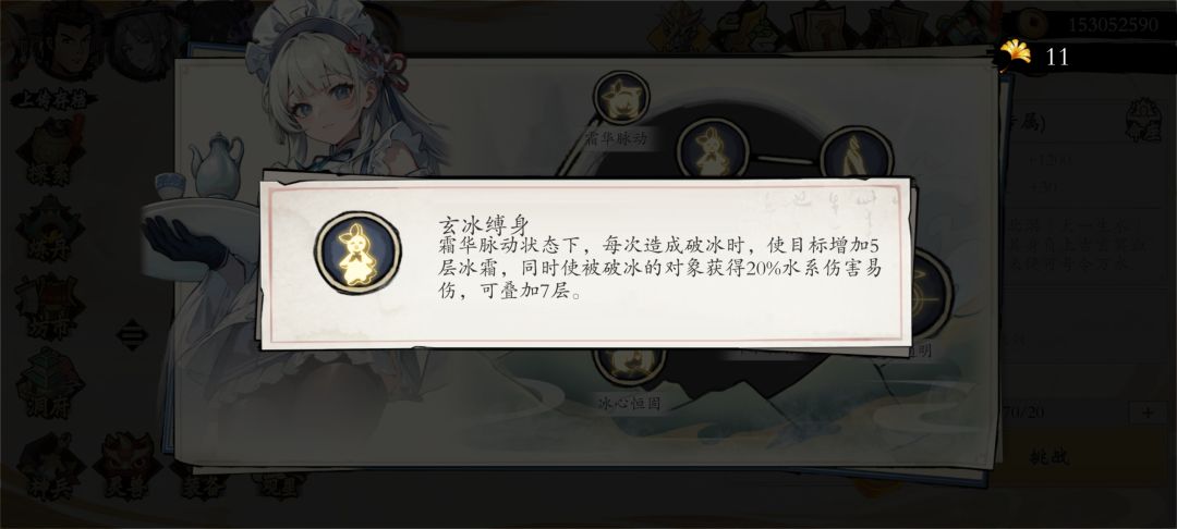 第二套:上面我说了,带神兵能到2000冰霜,我们就直接带海月,但是因为他的CD太长了,所以说又带一些辅助,这套就是羽也能用的,这套的话挂机挺好用的,上面那一套需要手操,这套最终打出来的伤害是17万京,不过在实际测试当中,2000和不到2000伤害差不多,差距就几百京