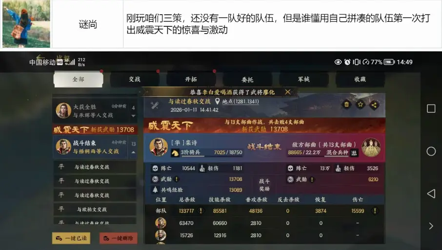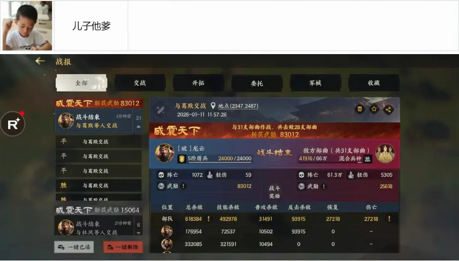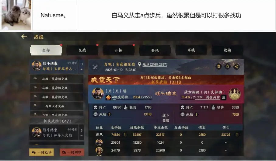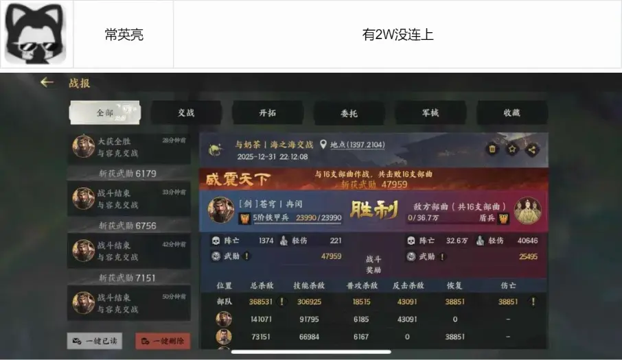 各位主公好!上期主公们踊跃投稿的高光武勋,看得九妹热血沸腾、惊叹连连!有主公分享单场破8万的战绩,威震天下;更有主公晒出对自己意义非凡的武勋,每一份战功都是荣耀的见证!