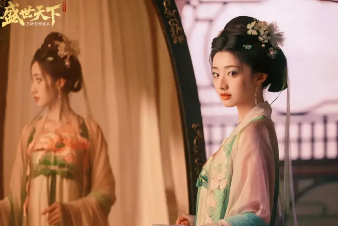 早在2025年10月,《盛世天下女帝篇》的文字互动版已在橙光平台完结,凭借唐代宫廷权谋题材与非遗美学元素(唐代服饰色谱、湘西傩舞特效)积累了初始热度,后续由某中型影视公司联合游戏平台加码投资超千万,升级为真人影游,准备借春节档流量实现破圈。