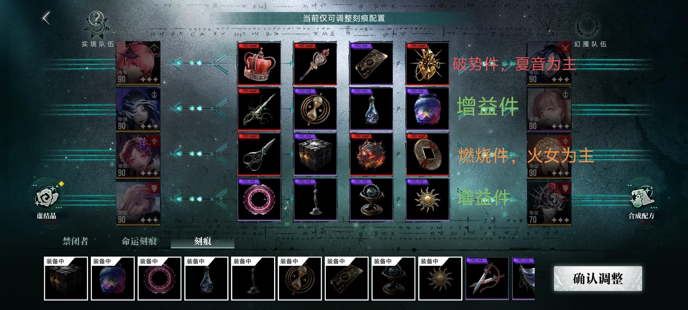 4.夏音队不拿射手,有个破势红件要求职业唯一;火女队有重构阿黛拉基本起飞,本来应该阿黛拉开局,但幻境有一关免疫普伤,不好应对。
