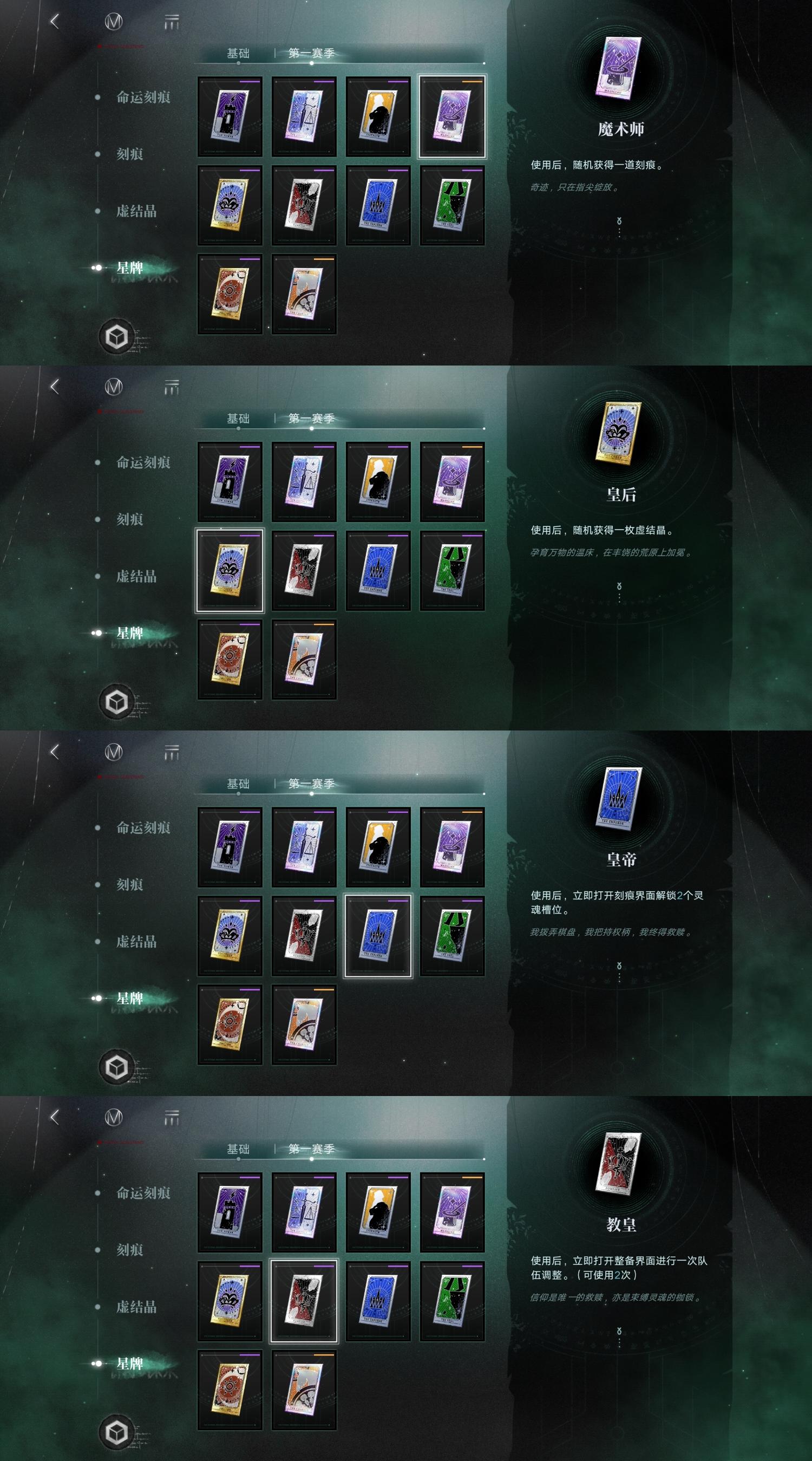 1.开局携带金币卡+道具卡(魔术师,皇后,皇帝,教皇)。