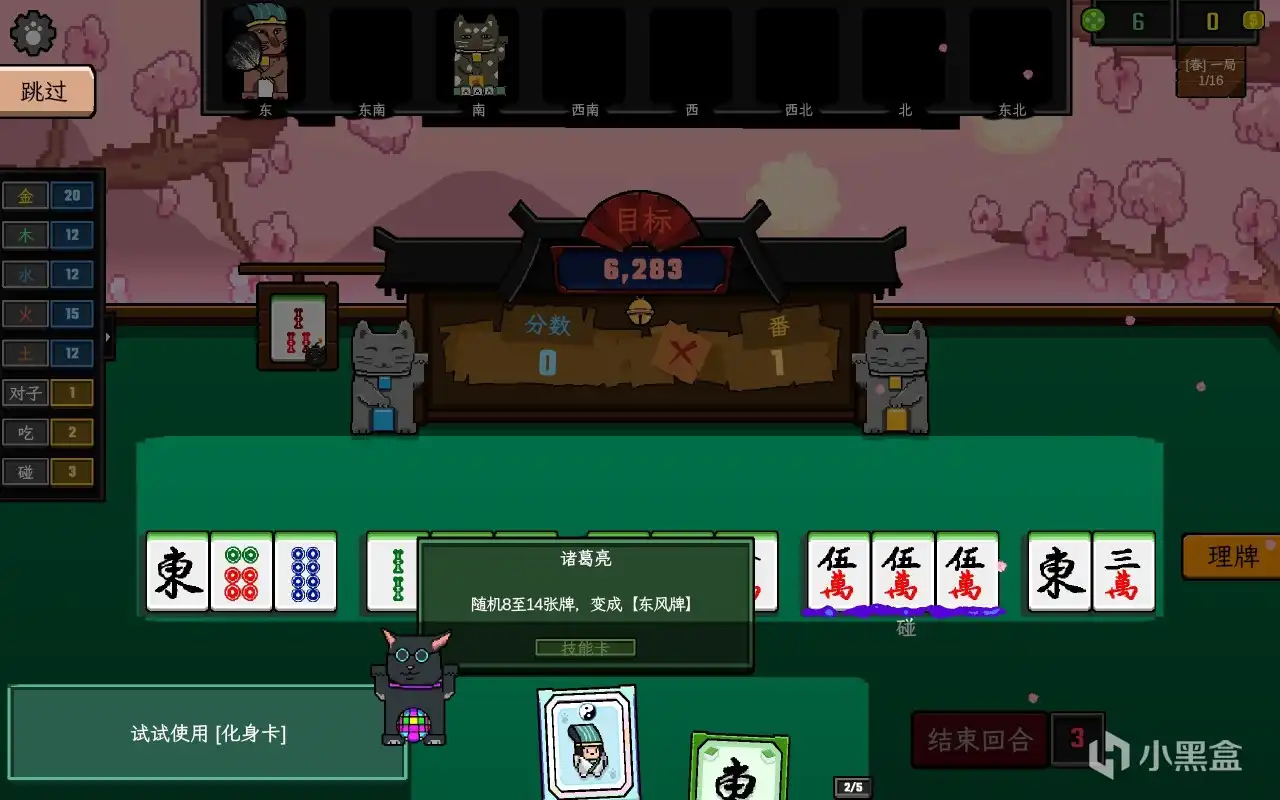 比如这里的诸葛亮,可以把手上的大部分牌换成风牌,满足胡牌需求。